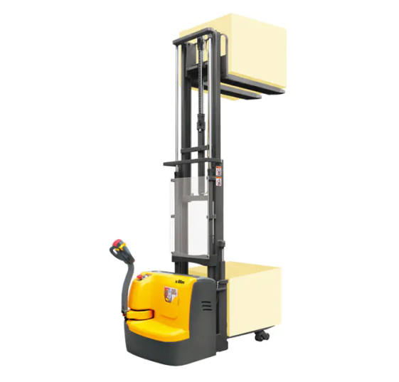 **Электрический штабелёр с начальным подъемом CDDR15S** — это мощное и универсальное решение для интенсивных складских работ. Благодаря функции начального подъема, модель легко справляется с перемещением грузов по неровным поверхностям, рампам и пандусам. Дополнительное приподнятие опорных вил позволяет перевозить паллеты «внахлест» и использовать штабелёр как электрическую тележку.