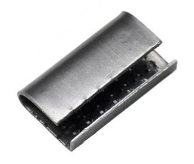 Скоба для полиэстеровой ленты изготовлена из металла толщиной 1,0мм. Для надежного крепления на внутренней поверхности скобы выполнена гребневидная насечка, препятствующая выскальзыванию ленты из замка.